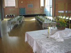 Såvel salen som mødelokalerne er meget velegnet også til fester som konfirmationer og barnedåb.