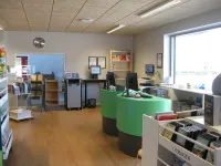 Biblioteket ligger lige inden for døren i centeret med adgang gennem en skydedør. Du kommer nemt ind via centerets hovedindgang fra parkeringspladsen.